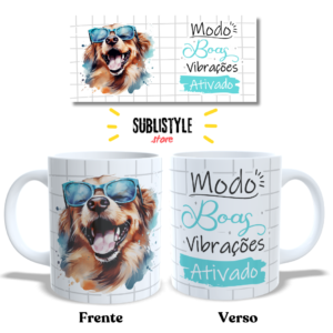 Caneca de Porcelana Cachorro com Óculos | Modo Boas Vibrações Ativado | 325ml |