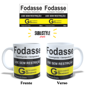 Caneca de porcelana “Fodasse – Rótulo de Remédio” | 325ml | Presente Engraçado