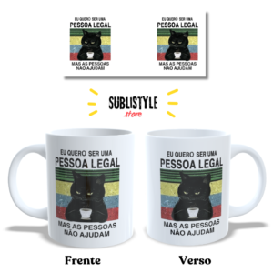 Caneca de porcelana Gato Preto – “Eu quero ser uma pessoa legal,mas as pessoas não ajudam” | 325ml |