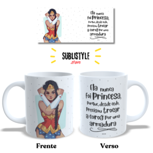 Caneca de porcelana Mulher Maravilha – Frase Inspiradora | 325ml | Presente Empoderador