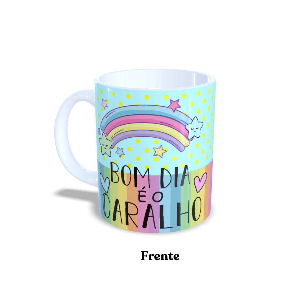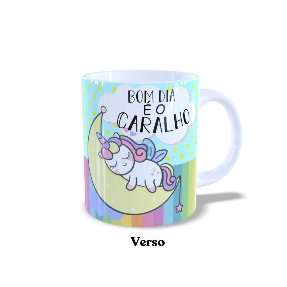 ☕Contém 1 Caneca de porcelana Unicórnio – “Bom dia é o caralho” 325ml