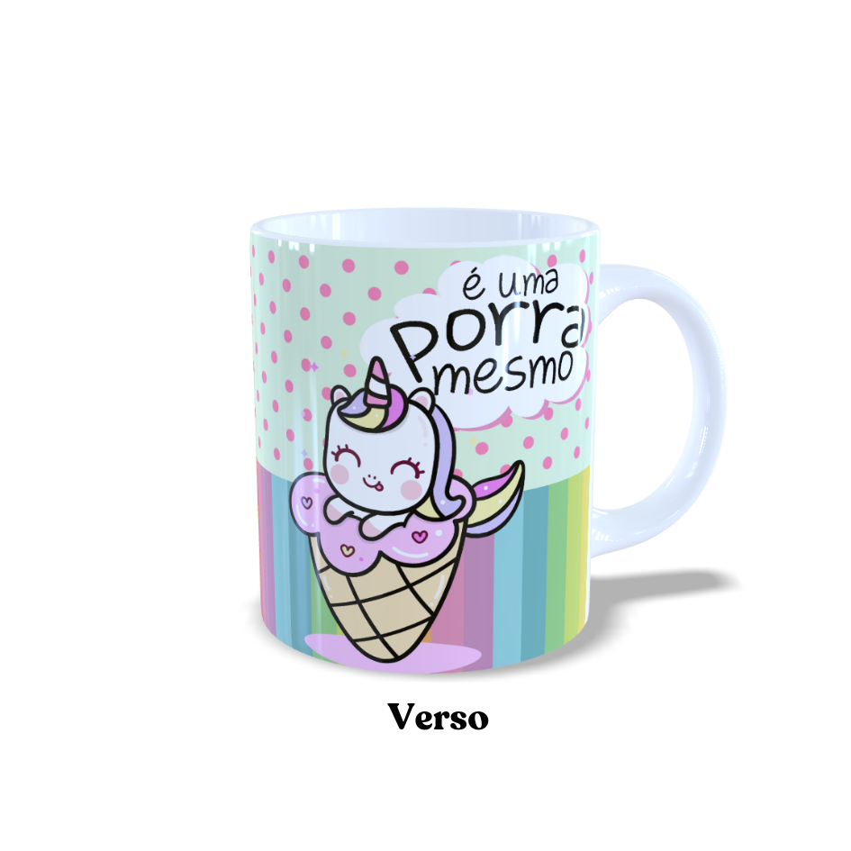 ☕Contém 1 Caneca de porcelana Unicórnio – “É Uma Porra Mesmo” 325ml