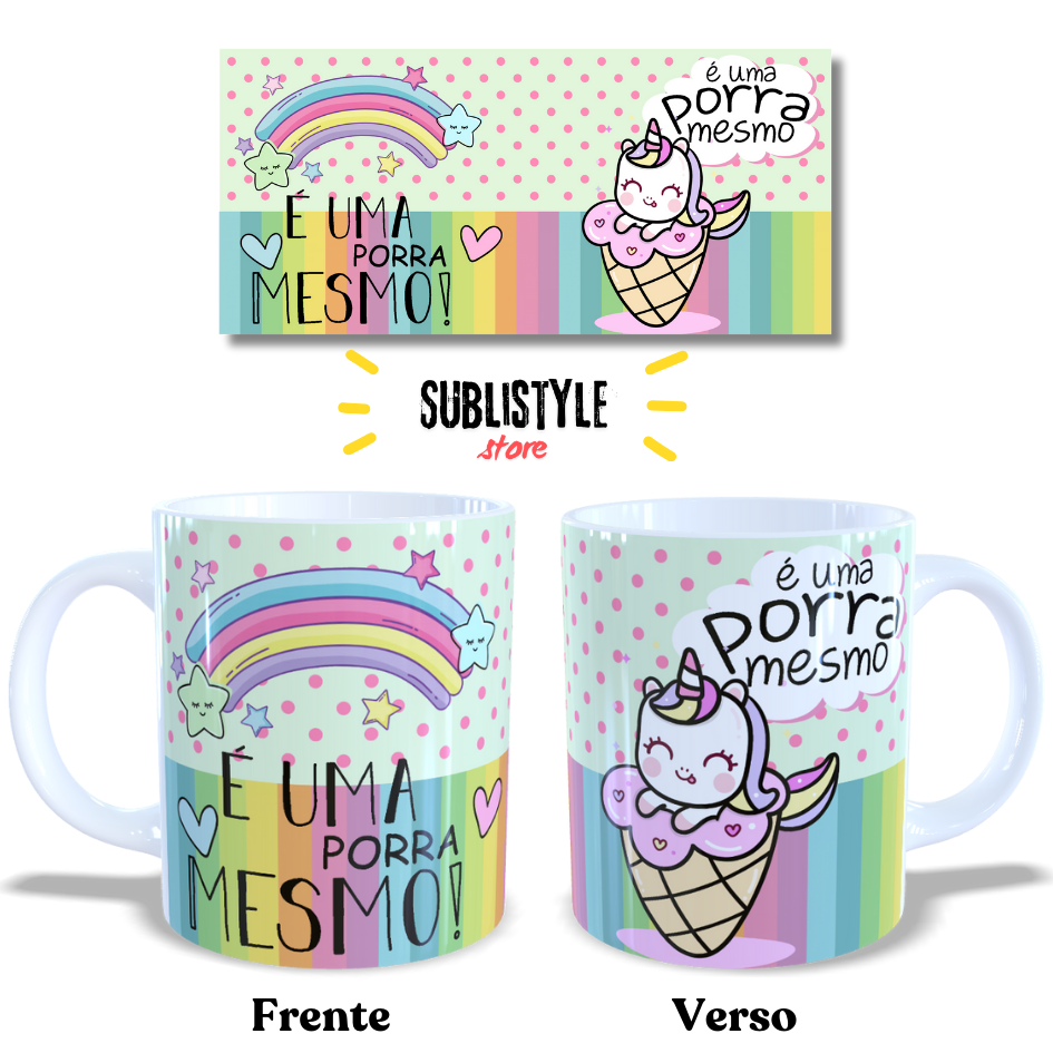 Caneca de porcelana Unicórnio – “É Uma Porra Mesmo” | 325ml | Presente Engraçado