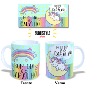 Caneca de porcelana Unicórnio – “Bom dia é o caralho” | 325ml | Presente Engraçado