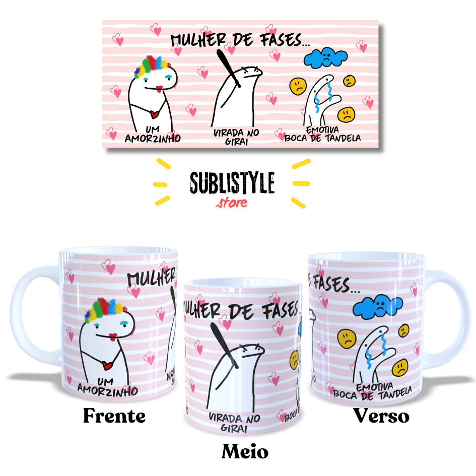 Caneca de Porcelana Mulher de Fases Flork | 325ml | Presente Criativo e Engraçado